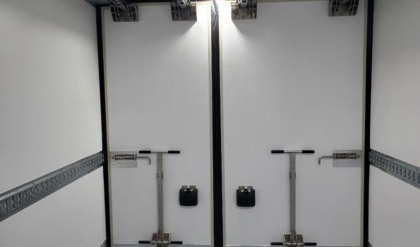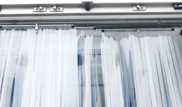 Fermeture arrière par rideaux coulissants pour limiter les déperditions de froid.